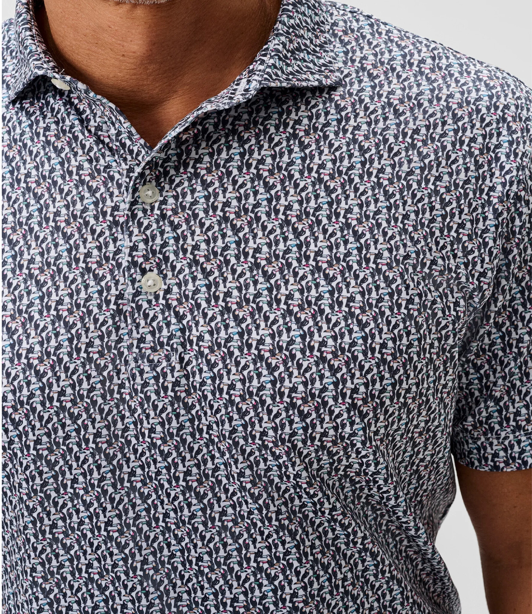 - Printed performance jersey 3 button polo